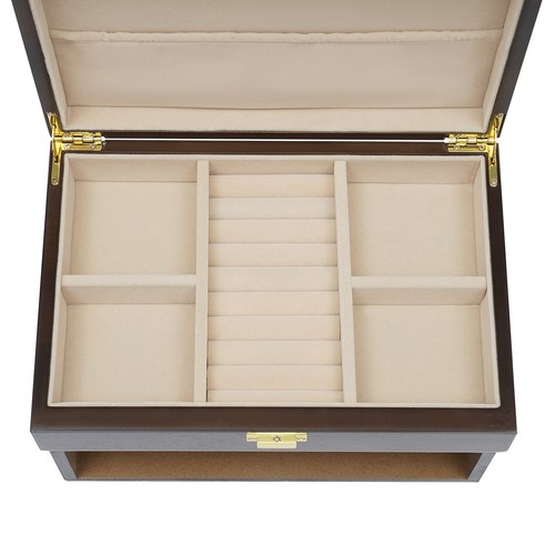 Elegant Appearance: the Classic Black Walnut Jewelry Box with Lustrous Metal Handles Showcases Its Nobility, Elegance, and Style. It Complements Your Noble Temperament While Adding Elegance to Your Dressing Table.